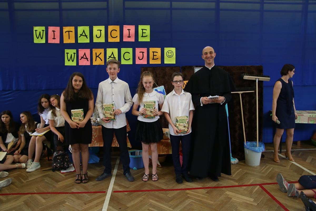 Do naszej szkoły chodzą uczniowie, którzy bardzo chętnie się uczą i otrzymują wspaniałe śwaidectwa. Do wybitnych osiągnięć należą te, gdy osoba ma średnią za cały rok 6.0. Tym większe gratulacje dla Oli, Gabrysi i Kasi (zdjęcia z krecikiem ks. dyrektora)