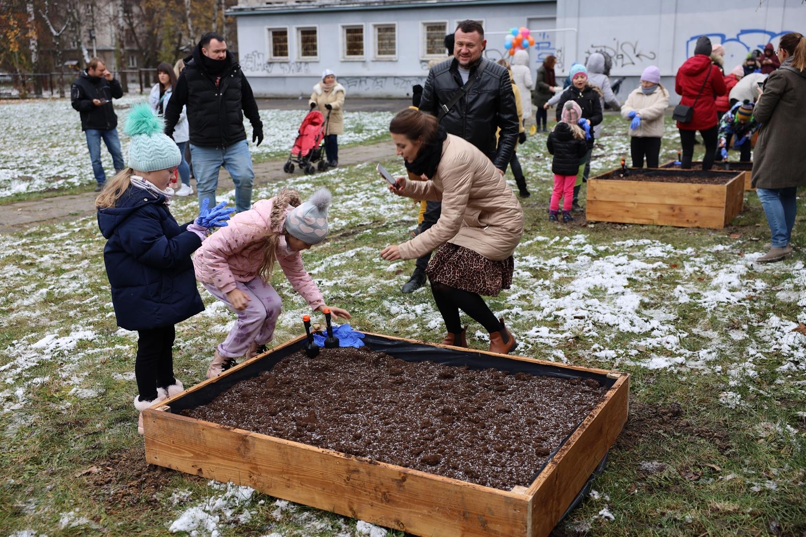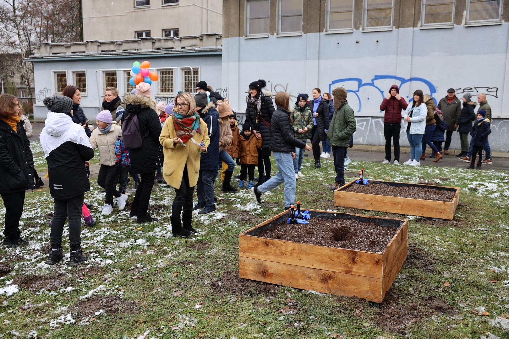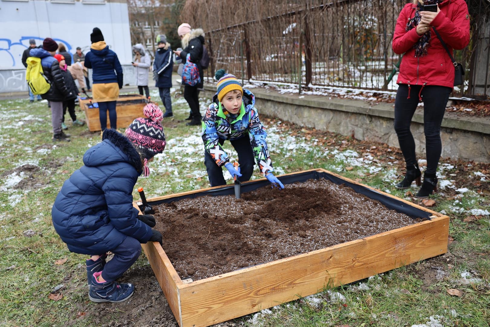 I tak powstał szkolny ogród wyposażony w 20 donic, w których zostaną zasadzone rośliny a w ich pielęgnacji pomogą otrzymane zestawy ogrodnicze.
