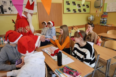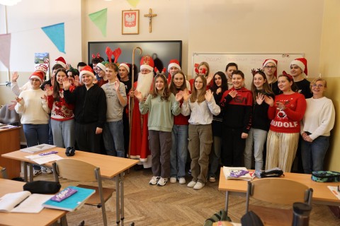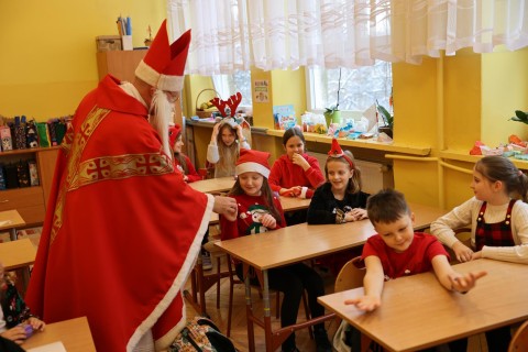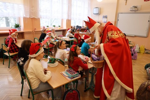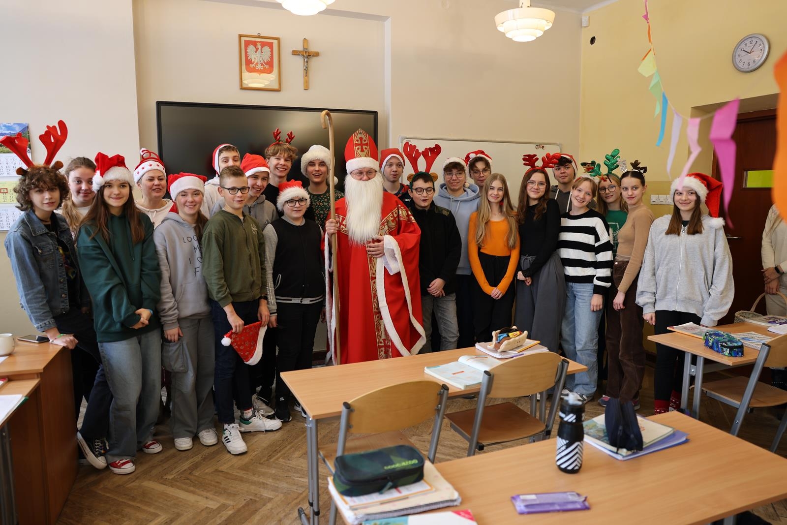 Szóstego grudnia przypada liturgiczne wspomnienie św. Mikołaja, biskupa. To dzień naszej szczególnej pamięci o osobach które mają za patrona św. Mikołaja biskupa. To także dzień kiedy bardziej pamiętamy o bliskich nam osobach i pragniemy zaznaczyć to w różny sposób. W naszej rzeczywistości szkolnej bardzo pomagają nam rodzice by oprawa była wyjątkowa... Bardzo dziękujemy Radzie Rodziców za obecość wśród nas i pomoc.